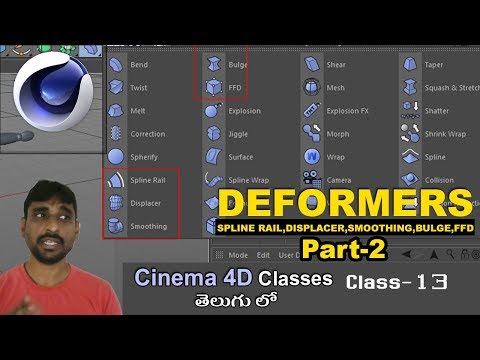 C4D Deformers (part-2) | Class- 13 | CINEMA 4D DEFORMERS SPLINE RAIL,DIS...